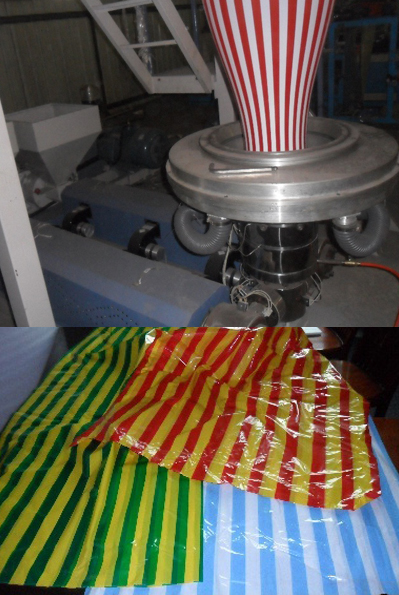 雙色彩條吹膜機(jī)用于吹制各種低密度聚乙烯(LDPE)、高密度聚乙烯(HDPE)彩條塑料薄膜。廣泛應(yīng)用于食品、水果、服裝、紡織品、日用品等民用及工業(yè)品包裝,無需經(jīng)過印刷就能達(dá)到彩色化。