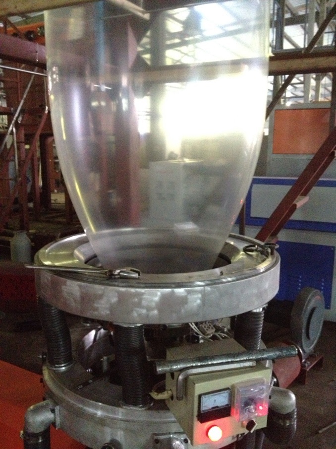 2、模頭鍍硬鉻,其結(jié)構(gòu)為螺旋芯軸式,擠出的熔融料均勻,生產(chǎn)的薄膜光潔度好,風(fēng)冷裝置結(jié)構(gòu)為迷宮型,出風(fēng)均勻。