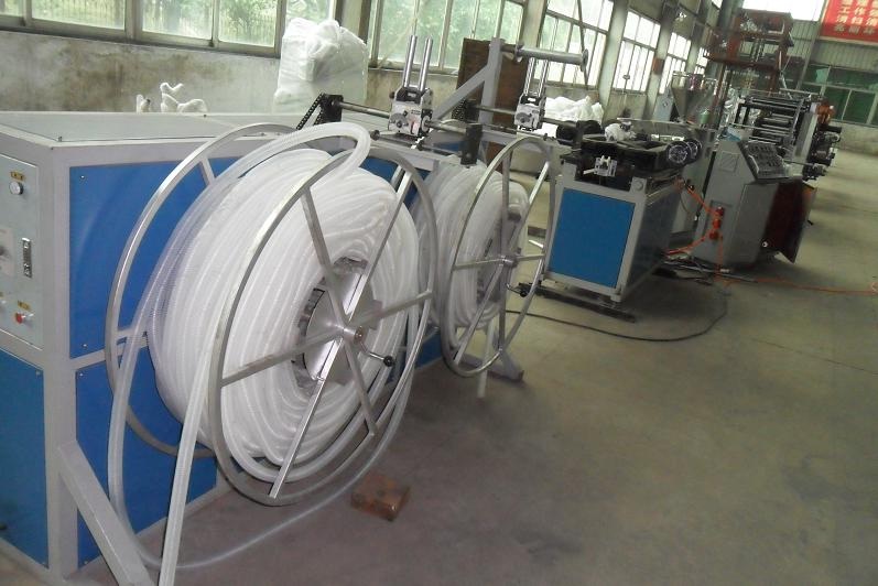 單壁波紋管生產(chǎn)線:主要包括擠出機、波紋管成型機、模塊、冷卻裝置、計數(shù)器、卷取機,可連續(xù)擠出成型多種規(guī)格的大小口徑單壁波紋管。