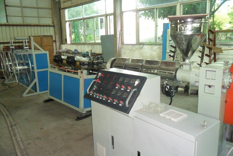 擠出機:高速高效螺桿,硬齒面減速箱,變頻器調(diào)速,原料受熱均勻,塑化效果好,保證了擠出的速度和效果。