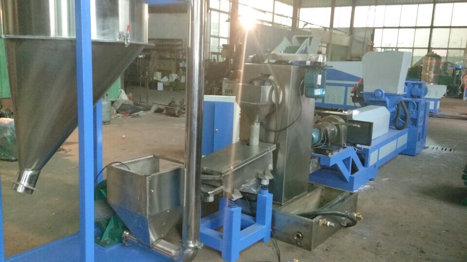 該機(jī)組可選配自動(dòng)喂料,自動(dòng)破碎式或人工喂料式,旋刀水切,自動(dòng)脫水,震動(dòng)分粒,風(fēng)機(jī)干燥及不銹鋼儲(chǔ)料罐。采用該機(jī)組生產(chǎn)的顆粒均勻性好,干燥程度高??捎糜贚DPE,HDPE,LLDPE,PP,ABS,EPE,EPS,EVA塑料的回收造粒。